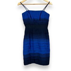 Monique Lhuillier Ruched Ombré Chiffon Mini Dress Blue Sz 2 Prom Bridesmaid