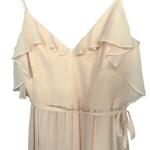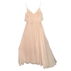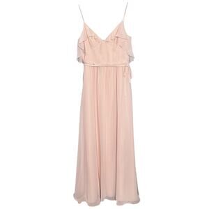 Monique Lhuillier Women's Size 8 Ruffle Maxi Bridesmaid Dress Blush Pink Formal
