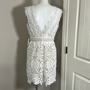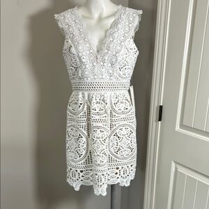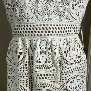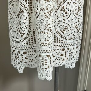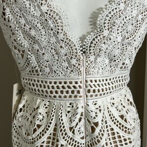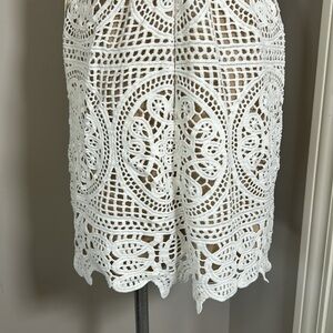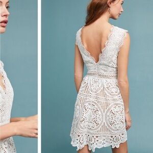 Monique Lhuillier x Anthropologie Yolande Lace Dress Ivory Scalloped Vneck 8 NEW