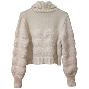 Monique Lhuillier Collection Textured Cream Turtleneck Boxy Cropped Sweater Sz M