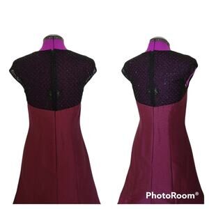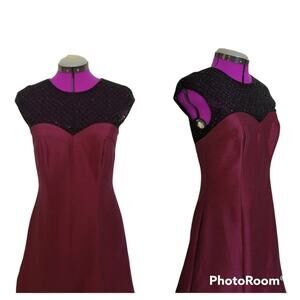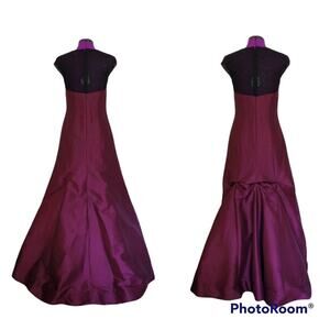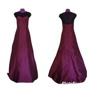 Monique lhuillier Burgundy Beaded Mesh Bodice Gown with Train