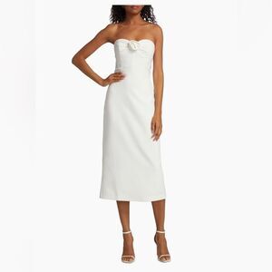 Monique Lhuillier Leonor Strapless Crepe Midi Dress, Size 12, White, NWT
