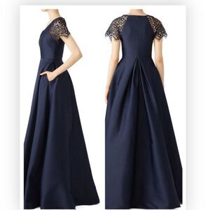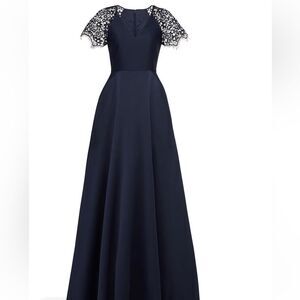 Monique Lhuillier Navy Blue Cap Lace Sleeve
