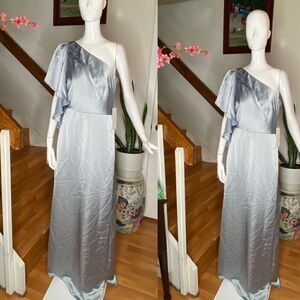 Luxe charmeuse lends elevated structure and eye-catching shine to this one-shoulder maxi dress