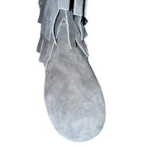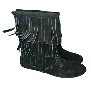 Stylish black ankle boots with fringe detail. Perfect for casual wear.