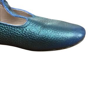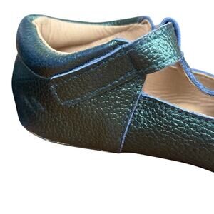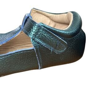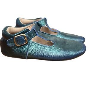 Monkey Feet Girls Metallic Teal Blue T Strap Flats Leather Kids Shoes 4 - 5 Y