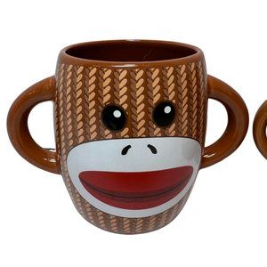 Monkey Hot Cocoa Mugs Set of 2 Kids Fun Ceramic Pottery 2 Handles