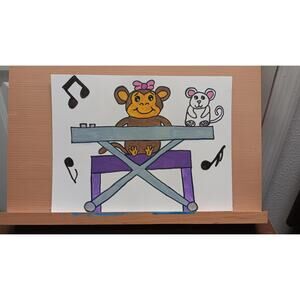 Monkey Playing Piano with Mouse: Fun Nursery Artwork on Watercolor Paper 9 x 12
