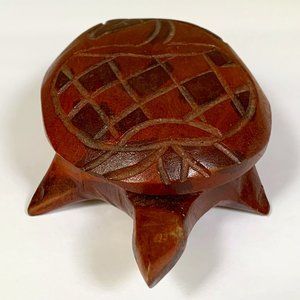 Monkey Pod Box Turtle Wood Trinket Carved Pineapple Hawaii Tiki Decor Jewelry
