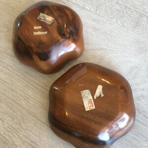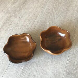 - Vintage Monkey Pod Wood Flower Scallop Bowls 2