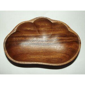 Monkey Pod Wood 7"Bowl seashell shell scalloped Serving Trinket Nut Dish MCM vtg