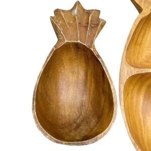 Monkey Pod Wood Serving Snack Bowl Set Carved Pineapple Vintage Tiki Decor
