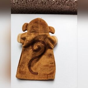 This listing is for a cute, unbranded monkey puppet. He's about 10" tall and 6" wide. An adult hand can fit into this.