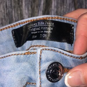 Monkey ride jeans original vintage color is blue, designed in Los Angeles, size is 7/28, and they are very stretchable!