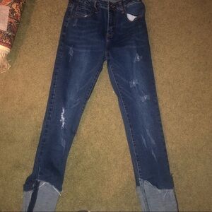 Monkey Ride women’s distressed deep cuff skinny jeans