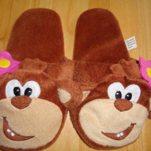 Cute Monkey Girl’s Slippers Open back / slip on Size 3 but would fit a smaller foot too Very little wear Soft, warm and silly