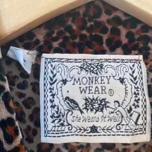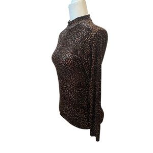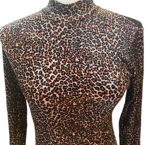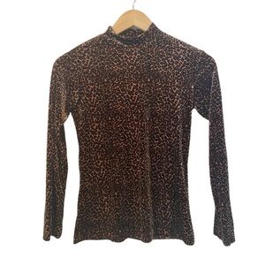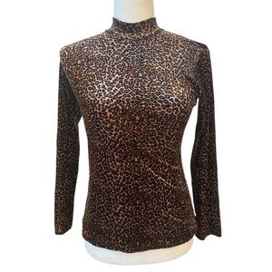 Monkey Wear Womens Vintage Velour Mock Turtleneck Cheetah Print Top Size Small