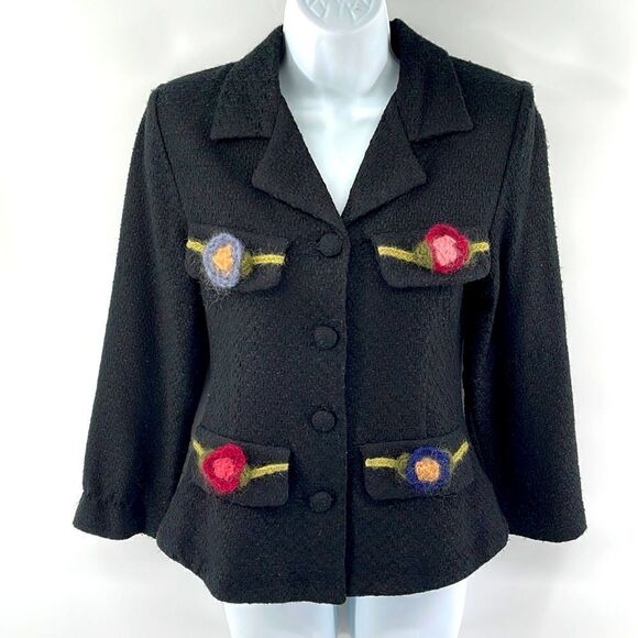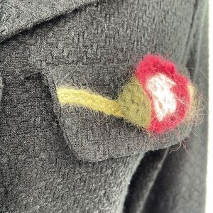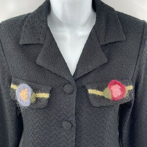 Monkey Wear vintage VTG tweed blazer suit coat jacket crochet flower black