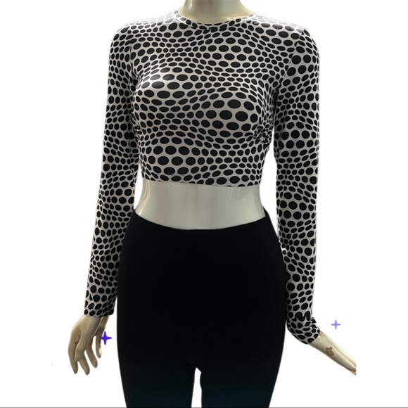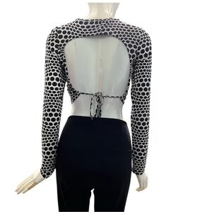 Black And White Long Sleeve Pattern Crop Top Bareback