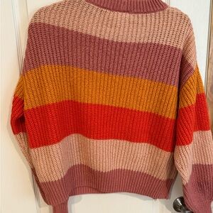 Vibrant stripes in warm tones. Cozy and stylish crew neck. Ideal for a bold statement.
