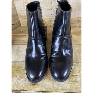 Monki Square Heel Boots Chunky Black Unique Side Zip Womens Size EU 38 US 7