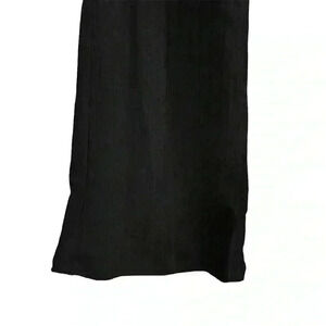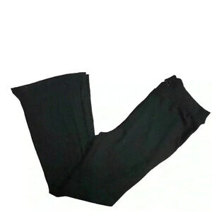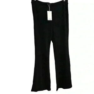 These Monki flared pants in size L are designed for women and feature a high-rise fit with a pull-on closure. Made from ribbed knit material, they offer a regular fit and are machine washable. The solid black color and flared leg style make them suitable for casual occasions. With a 30-inch inseam and a 35-inch waist size, these pants provide comfort and style. New with tags.