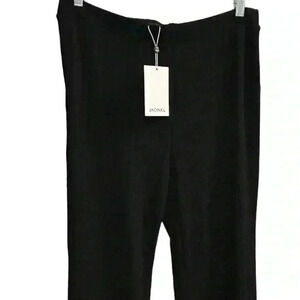 Keywords: Monki, flared pants, women's pants, ribbed knit, high-rise, casual wear, black pants, pull-on closure, machine washable, solid color, regular fit, size L, new with tags, flared leg, high-rise fit.