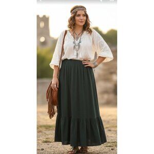 Monn NWT Modesty Jersey Whimsygoth Ruffle Elastic Waist Black Long Skirt 1XL