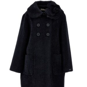 Monnalisa Girls Black Wool Coat with Flower – Size 8, New with Tags