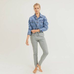 Mono B Cropped Denim Jacket w Ribbed Hem