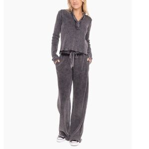 Mono B Distressed Mineral-Washed Athleisure Pants Black Size Small