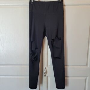 Mono B High Waisted Leggings with Distressed Cuts Details