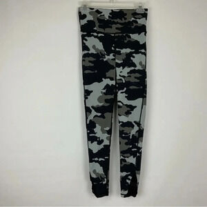 Mono B Jungle Camo Criss Cross Strap Leggings. Womens Size Small. High waist leggings. Mesh panel at the ankle with a Criss cross strap. Tiny pocket in the waistband. There is wear or fading in the butt area. There is a mark on the knee area of the legging. See pics for conditions. 81% Nylon, 19% Spandex. No modeling or trades. G108