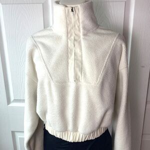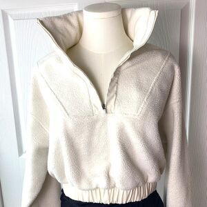 Mono B White Cropped Fleece 1/4 Zip Pullover Size L Minimalist