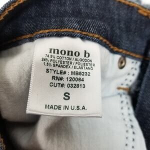 Excellent used condition, no holes tears snags or stains. Mono B dark wash cut off denim shorts. Front and back pockets, zip and button closure.
