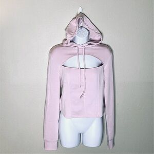 Mono b Cut Out Hoodie Size Large Cool Pink Long Sleeve Adjustable Self Ties