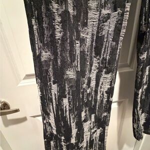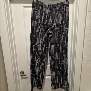 Chic pants with a striking black and white abstract pattern. Ideal for versatile styling.