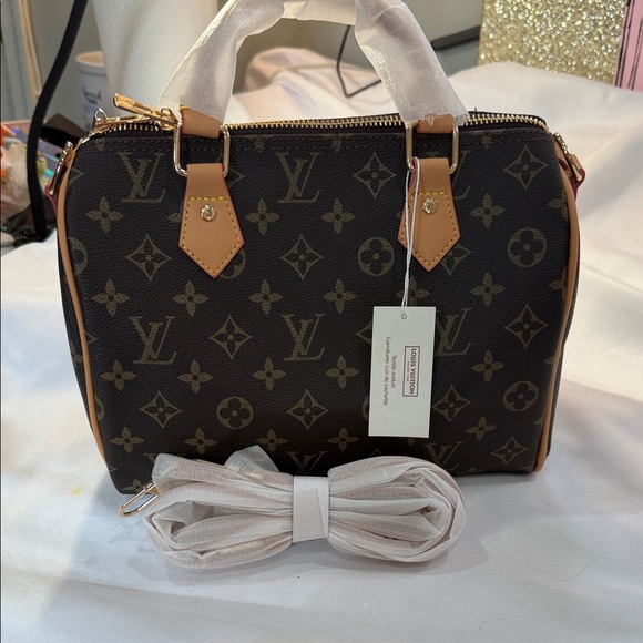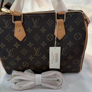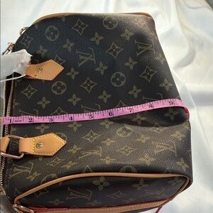 Stylish satchel with iconic monogram pattern. Features sturdy handles and elegant design. Beautiful quality speedy bag
