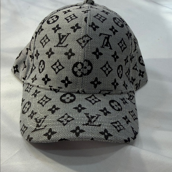 Stylish Louis Vuitton cap with iconic monogram design. Features black and gray colors.