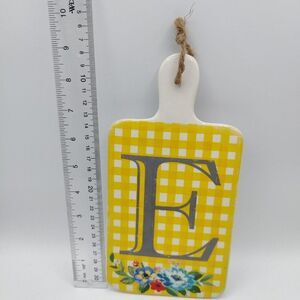 Monogram Cheese Board Initial “E” Ceramic Checkered Plaid Floral Country Decor