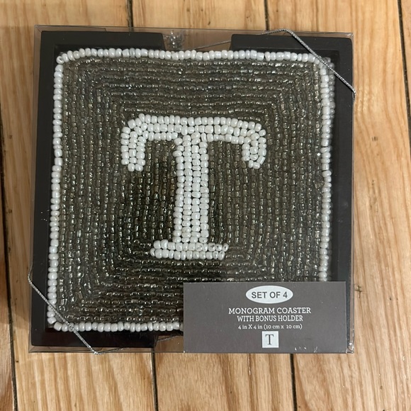Monogram Coaster (4Pack) with Black Holder, NWT
