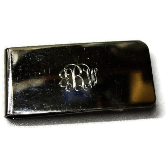 Monogram JBW Money Clip Silver Tone Cash Holder Used