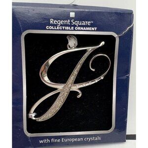 Monogram Letter J Ornament Silver 2.84” X 3” With European Crystals