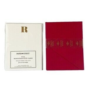 Monogram Notecard Set Gold Foil Print “R” White Card With Red Envelopes Set/10
