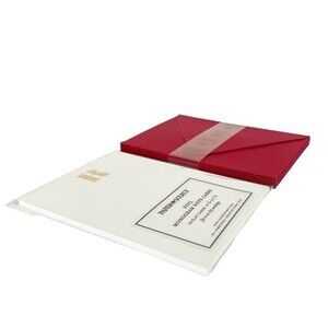 Foil embossed flat notecard pack with red envelopes. “R” embossed in gold foil. Envelopes feature a deep European envelope flap. Great for everyday stationery, holiday thank-you notes and last-minute hostess gifts!