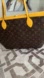 Stylish tote with iconic monogram print. Features striking yellow trim. Perfect for everyday elegance.