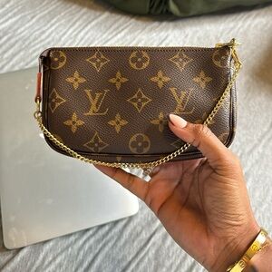 Larger than a mini pochette smaller than a pochette accessoire. Brand new from boutique never used