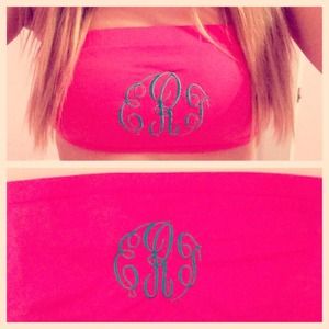 These are for a Monogrammed Bandeau Bikini Top. They are abaolutely adorable and are perfect for your upcoming spring break beach trip! Get yours order in because i am placing our first order for these tomorrow! We have 35 dofferent colors to choose from and endless thread color choices! They are $30 with $5 shipping. for more information and sizing options pleas email us at ohsewsassy21@gmail.com