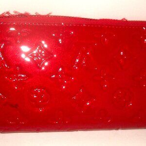 Monogrammed Red Vinyl Zip-Around CLutchWallet in Style of B=Vernis Wallet NOT LV