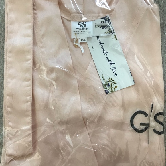 Monogrammed silk robe in a peach/pink color. Monogram is GS. Originally purchased from Etsy for a wedding party but ended up with extras.